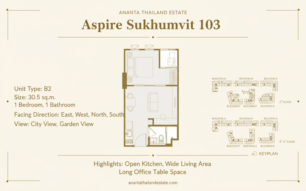 📌 Aspire Sukhumvit 103 ဟာ Udomsuk ဧရိယာရဲ့ Low-Rise, Pet-Friendly ကွန်ဒိုတွေထဲမှာ ဈေးနှုန်း၊ Location နဲ့ Concept အရ ရင်းနှီးမြှုပ်နှံဖို့ အကောင်းဆုံး “Golden Opportunity” ပါပဲခင်ဗျာ။